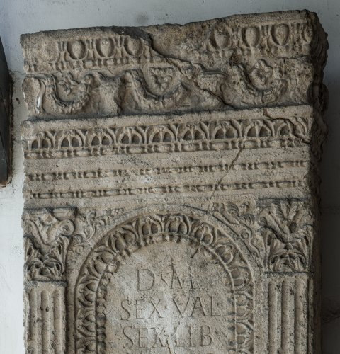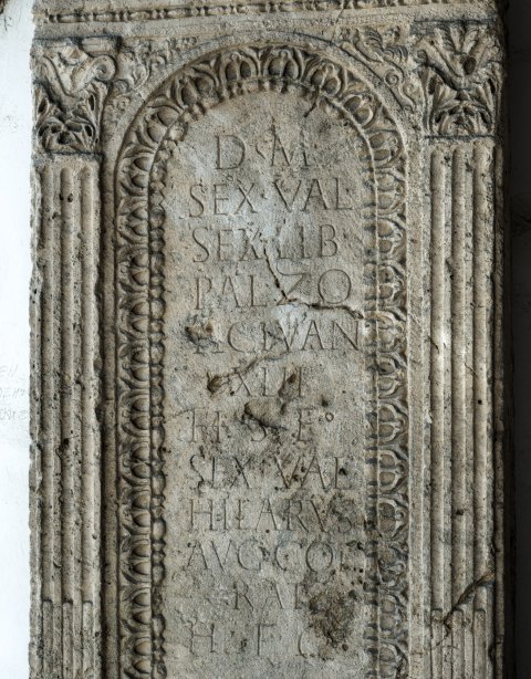 - D(is) M(anibus) / Sex(to) Val(erio) / Sex(ti) lib(erto) Pal(atina) / Zotici v(ixit) an(nos) / XLII / h(ic) s(itus) e(st) / Sex(tus) Val(erius) Hilarus / Aug(ustalis) col(oniae) Rat(iariae) / h(eres) f(aciendum) c(uravit)
