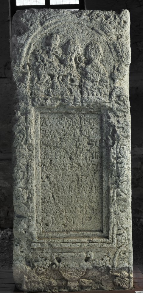 - D(is) M(anibus) / Aur(elio) Mund() / exarc(ho) n(umero) D(almatarum) / v(ixit) a(nnos) XXX et Au/reliae Surae / v(ixit) a(nnos) XX et Aureli/ae Augustae / v(ixit) a(nnos) VIIII Aur(elius) / Myrcianus / parentib(u)s / b(ene) m(erentibus) p(osuit)