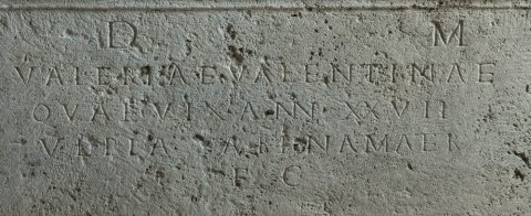 - D(is) M(anibus) / Valeriae Valentinae / quae vix(it) ann(os) XXVII / Ulpia Sabina mater / f(aciendum) c(uravit)