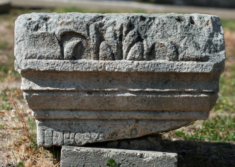 - Aufsatz mit Eckakroteren, dazwischen Palmette (auch auf den Nebenseiten)