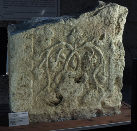 - Krater mit Weinranken, links glatte Rahmenleiste, rechts Reste eines ansetzenden Relieffeldes ?
