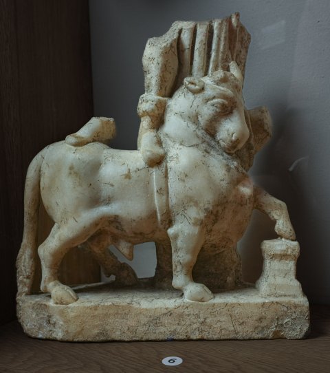 - Mythische Figur: auf dem Stier stehender Jupiter Dolichenus, der Stier setzt das linke Vorderbein auf einen Altar.