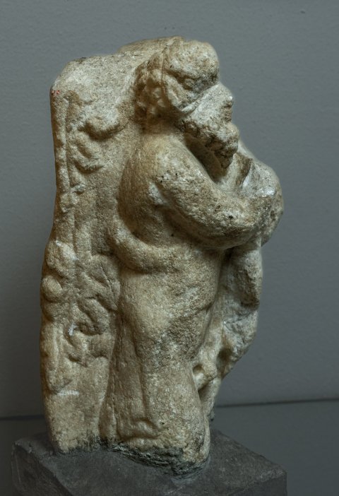 - Bärtiger Satyr mit Nebris, zu einer Dionysos - Liber Pater Statuette gehörig ?