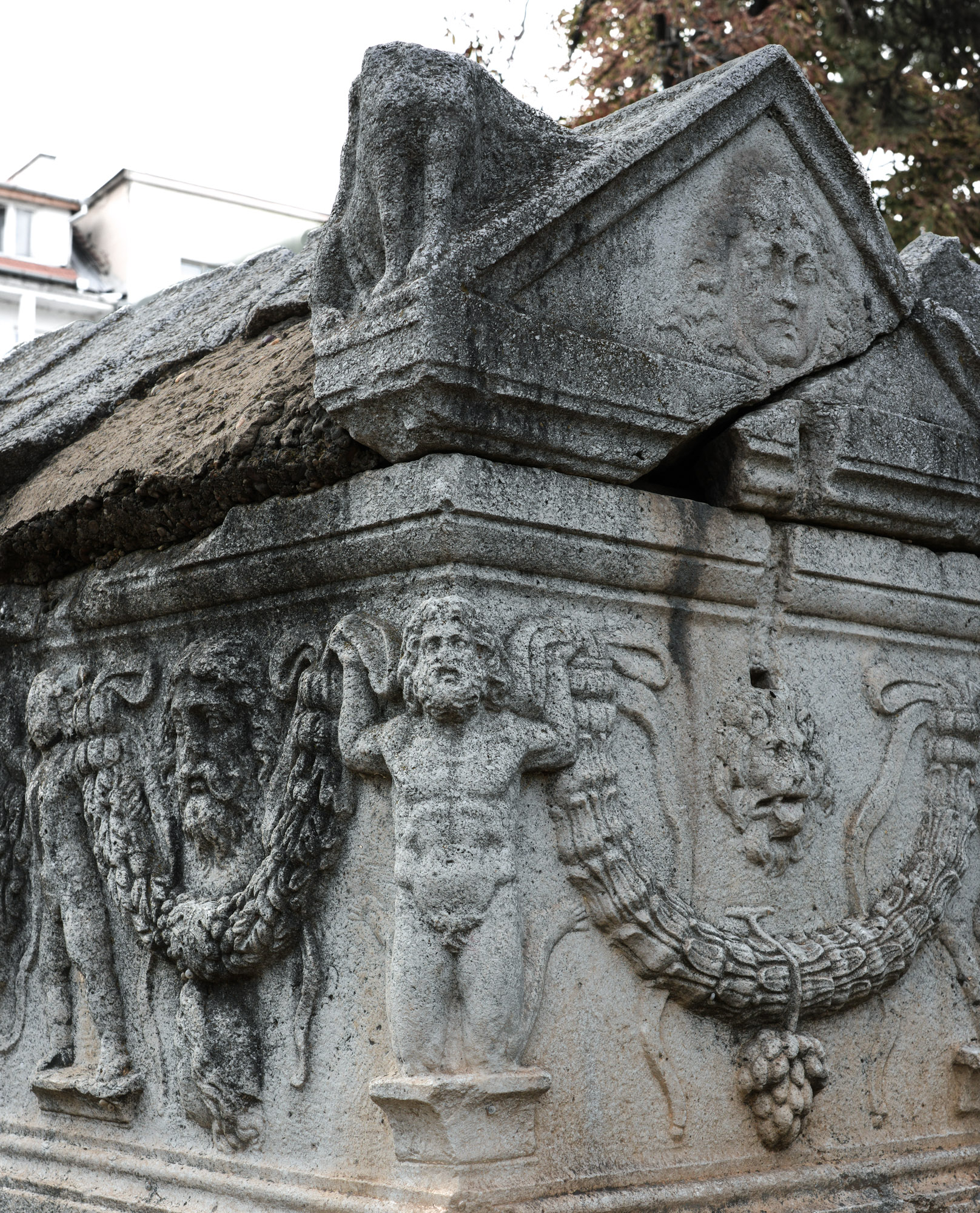 34955 Girlandensarkophag mit Reiterrelief