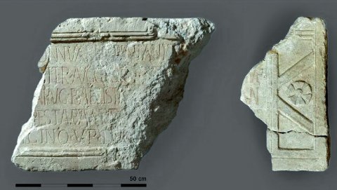 - [Iudicio Impp(eratorum) Caess(arum) d]d(ominorum) nn(ostrorum) Vale[n]tiniani et [Valentis trium/fantium glorio]siter Augg(ustorum) et or[dina]ti[one saluberrima(?) Imp(eratoris) / Caesar(is) d(omini) n(ostri) Grati]ani Aug(usti) ballista[rium castror(um) decim]an(orum) / [Vindobonens(ium)] restauratum ar[te militum curam agen]te / [Tempsonio(?) Urs]icino v(iro) p(erfectissimo) duc[e Pann(oniae) prim(ae) et Nor(ici) rip(ensis)]