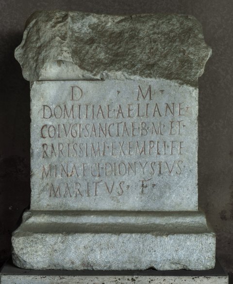 - D(is) M(anibus) / Domitiae Aelian(a)e / co(n)iugi sanctae b(ene) m(erenti) et / rarissimi exempli fe/minae Cl(audius) Dionysius / maritus f(ecit)