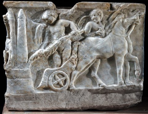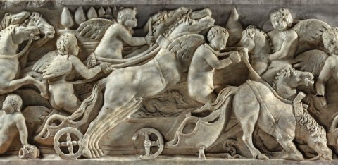 35100 Kindersarkophag mit Eroten beim Wagenrennen