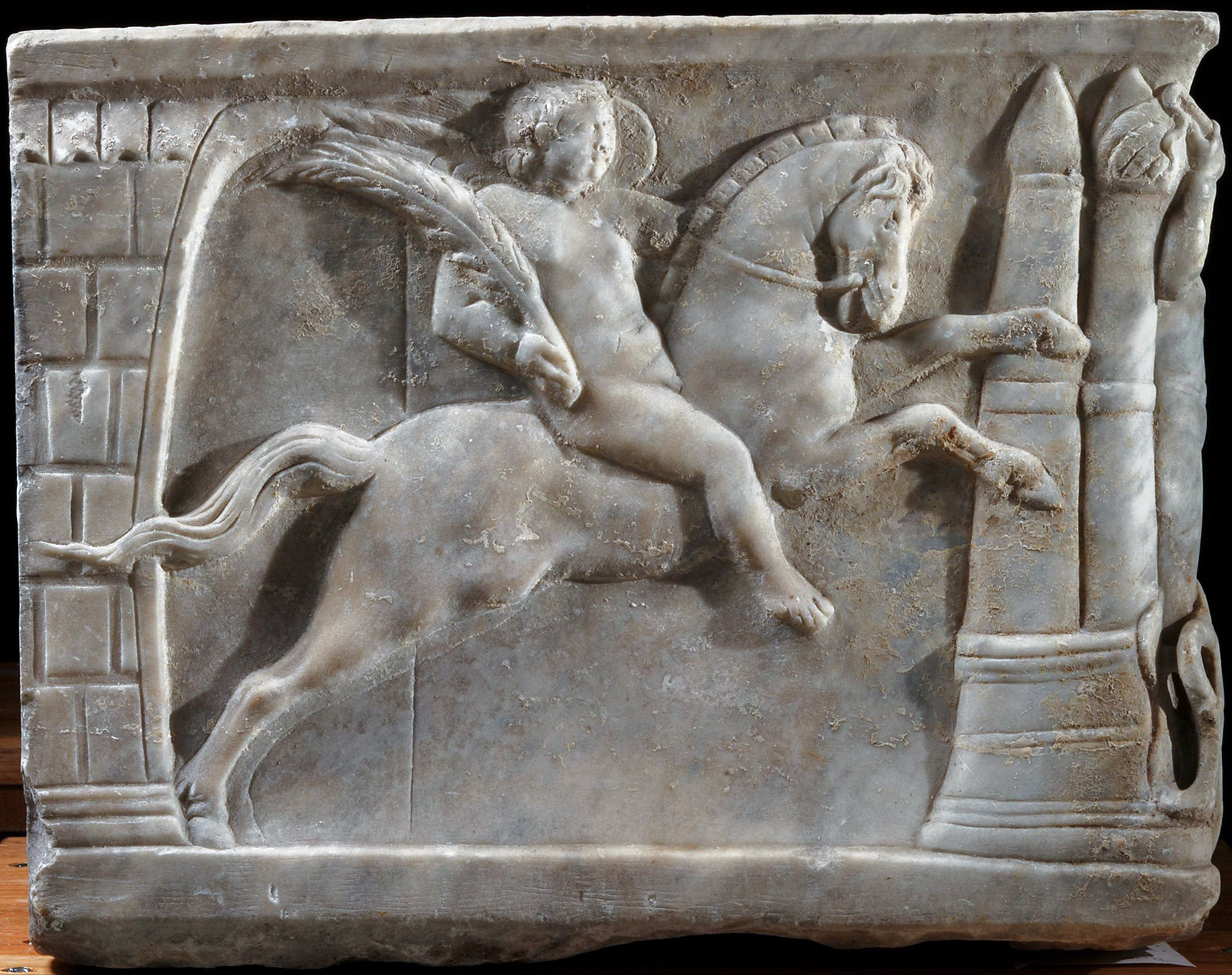 35100 Kindersarkophag mit Eroten beim Wagenrennen