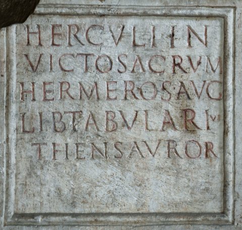 - Herculi Invicto sacr(um) / Hermeros Aug(usti) lib(ertus) tab(ularius) / thensauror(um) !