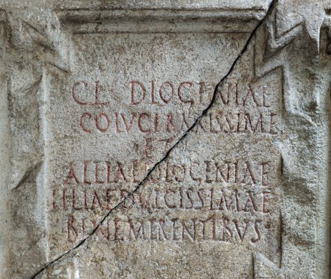 - Cl(audiae) Diogeniae / co(n)iugi rarissim(a)e / et / Aeliae Diogeniae / filiae dulcissimae / bene merentibus