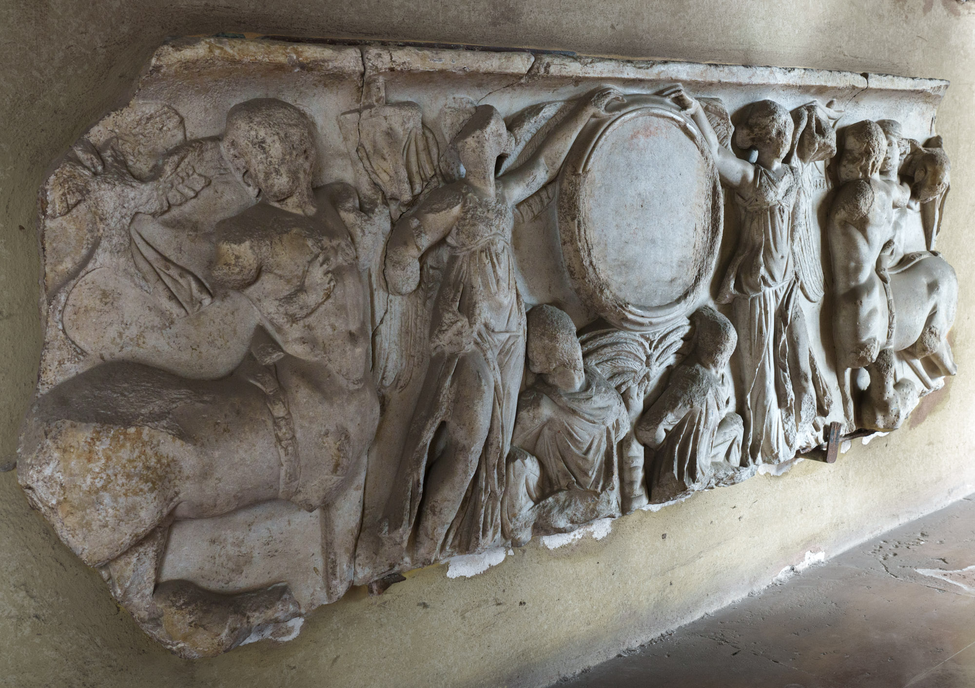 35111 Sarkophag mit Clipeus zwischen Victorien