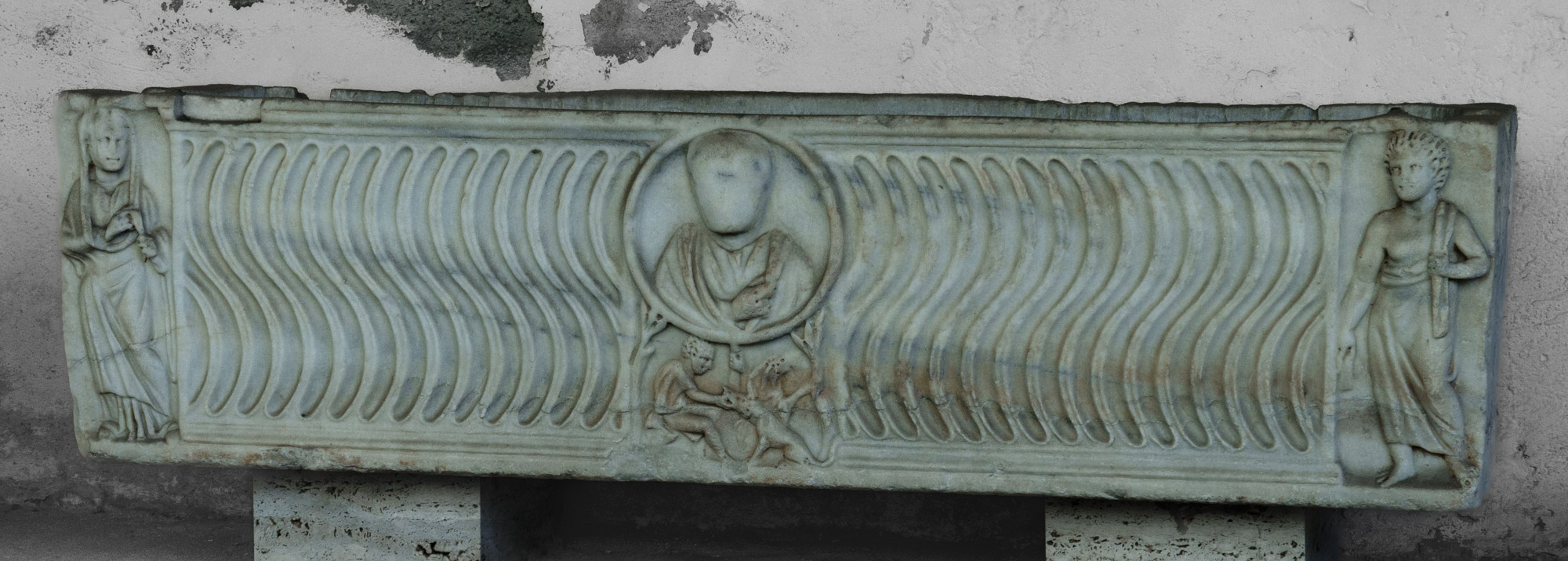 35120 Riefelsarkophag mit Porträtmedaillon