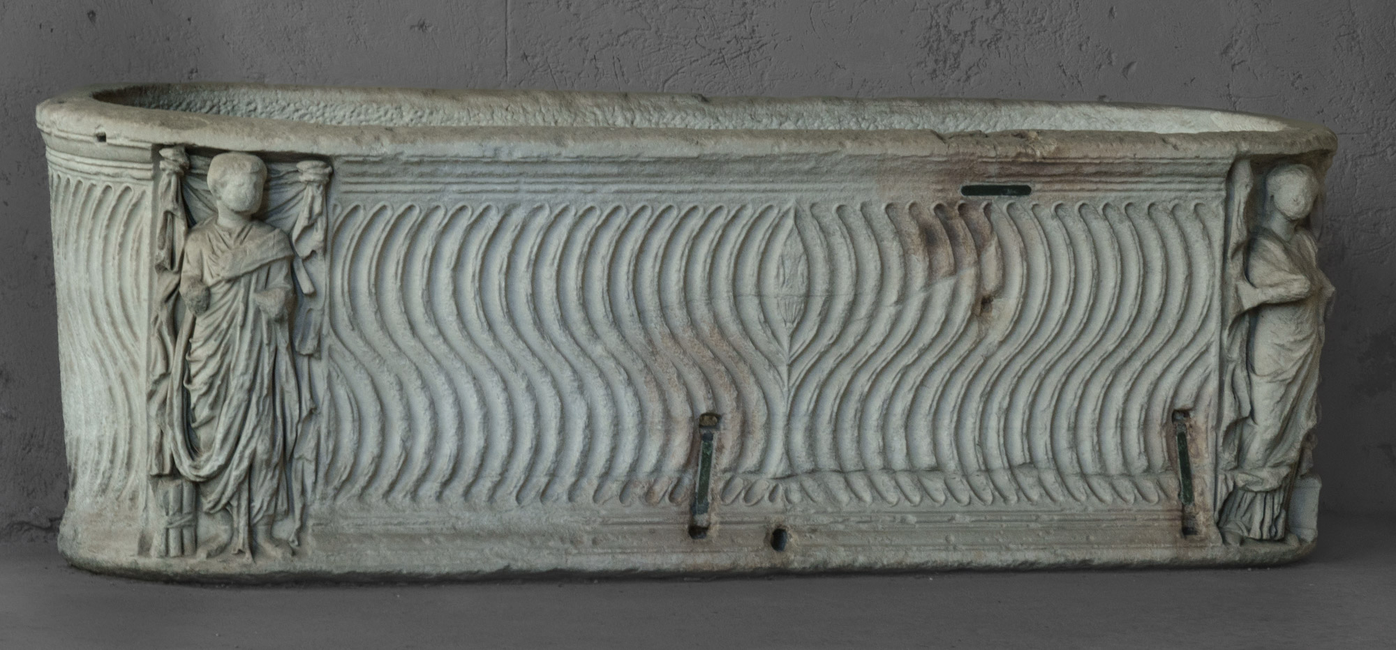 35121 Riefelsarkophag mit Figuren eines Ehepaares