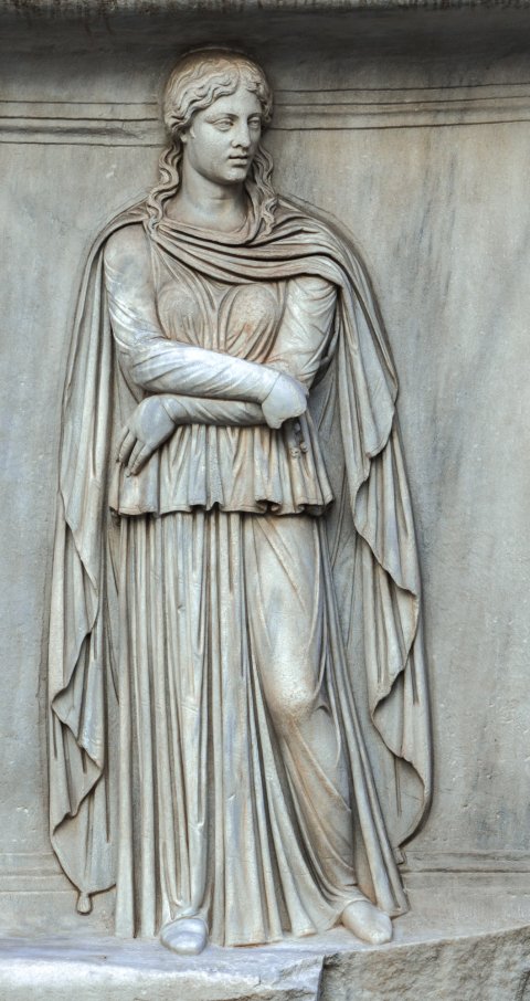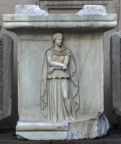 Die Reliefs mit Provinz-Personifikationen - alternierend mit Reliefs mit Tropaia - gehörten zum Hadrianstempel, den Antoninus Pius um 145 errichten ließ. - Kommentar
