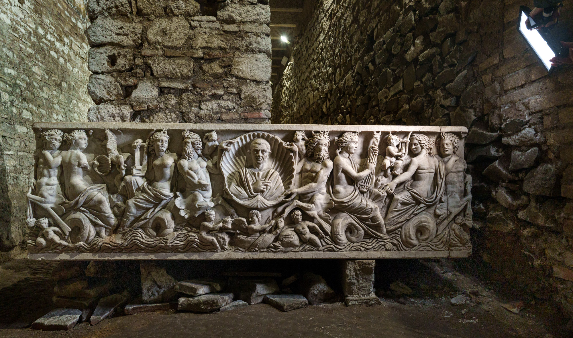 35137 Meerwesensarkophag mit Porträtmedaillon