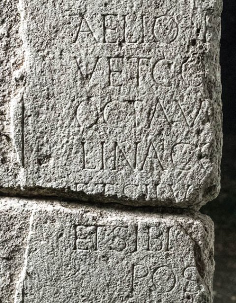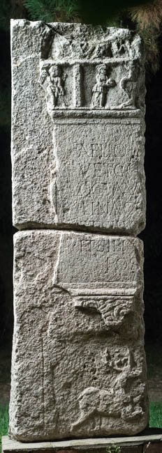 - Aelio P[---] / vet(erano) co[h(ortis) I |(miliariae) Hem(esenorum)] / Octavi[a ---]/lina co[niugi] / et Silvi[--- fil(i-)] / et sibi v[iva] / pos[uit]