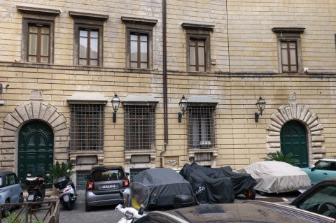- Fragment der Frontseite eines Riefelsarkophages, rechts Bildfeld mit Podest, darauf nach rechts hin gehender nackten Satyr (?), im linken Arm Pedum, um Schultern und rechten Arm Mantel (Nebris ?). Zwischen seinen Füßen Widderkopf.