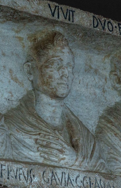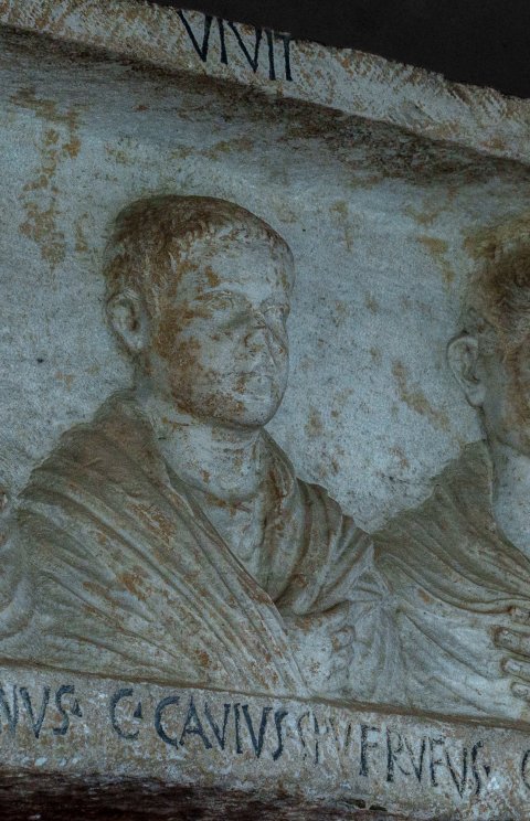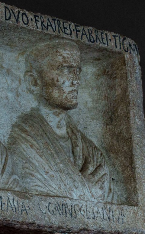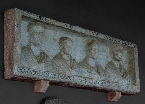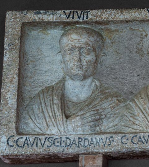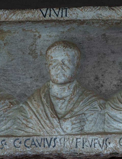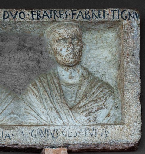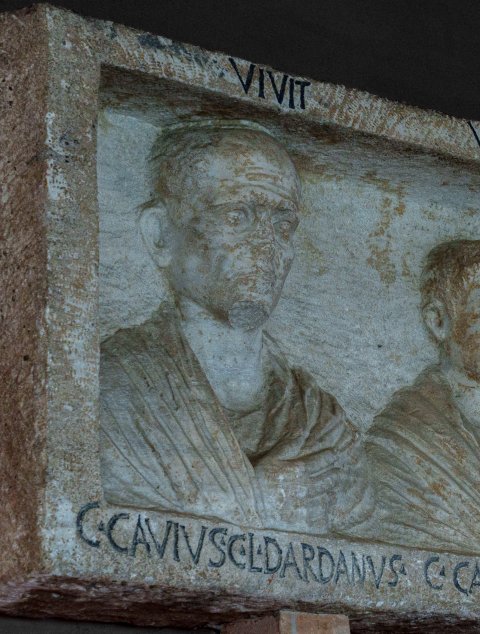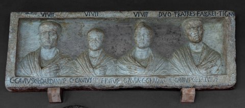 - Vivit / C(aius) Cavius C(ai) l(ibertus) Dardanus // Vivit / C(aius) Cavius Spu(ri) f(ilius) Rufus // Vivit / Gavia CC(aiorum) l(iberta) Asia // Duo fratres fabr{e}i tign(uarii) / C(aius) Gavius C(ai) l(ibertus) Salvius