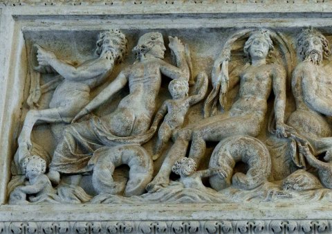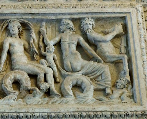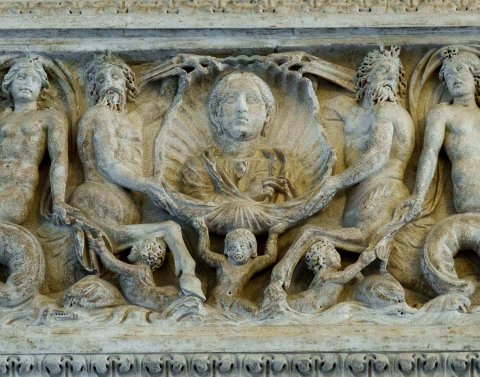35198 Meerwesensarkophag mit Porträtmedaillon