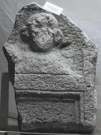 - Bekleidete Büste eines Mannes (?). Links Spuren einer weiteren Person (vermutlich Ehepaar).