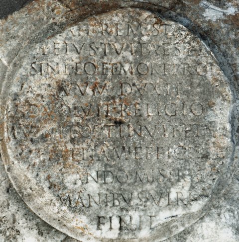 - ---] / [--- honorem] / [prov]exit rem sta[bilivit] / [familia]m eius tuita est n[ihil] / [facer]e sine eo mori pro il[lo] / [offici]um suum duxit / [quidq]uid volvit religiose [servans] / [du]m vixit obtinuit et ut [vinceret] / [mo]rtem etiam efficere [studu]/it quando miseri co/[---] Manibus viri / [---] finit [---] / [---?