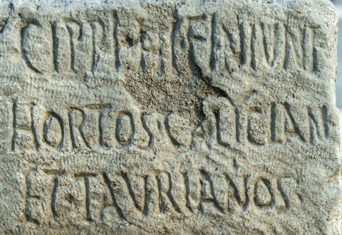 - Cippi hi finiunt / hortos Calyclan(os!) / et Taurianos