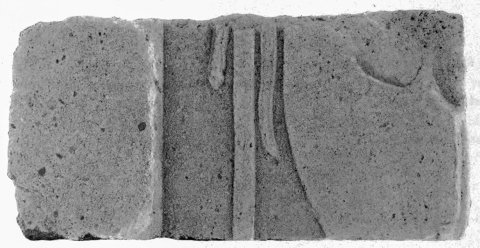 - Mittig drei senkrechte Streifen (Speerschaft mit Bändern?), rechts Teil eines Peltenschildes.