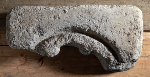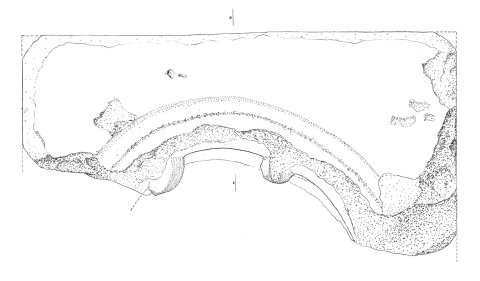 - zu romanischem Fensterbogen umgearbeitet, beidseitig abgebrochen, Fries abgerieben