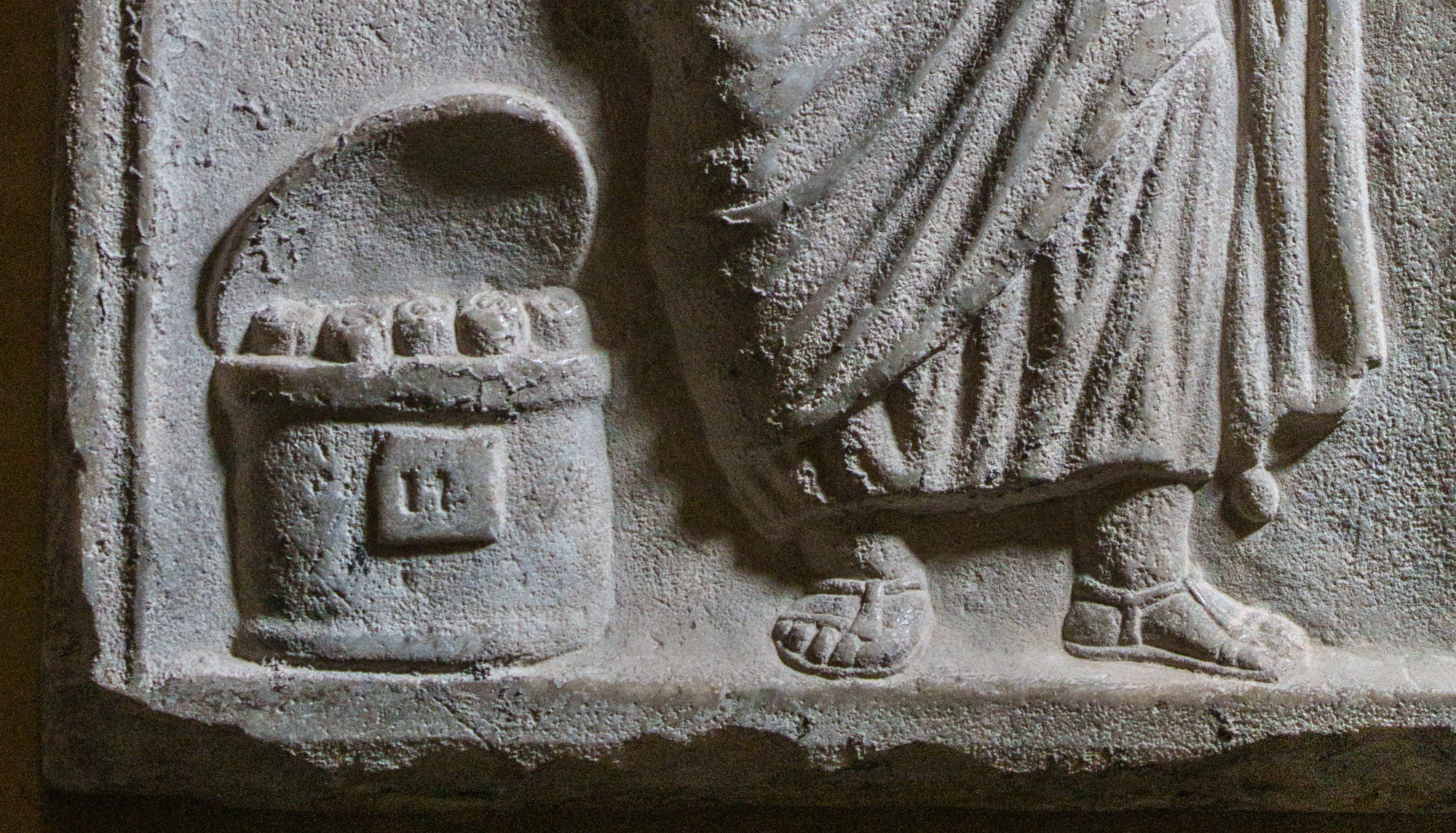 35322 Fragment eines Riefelsarkophages