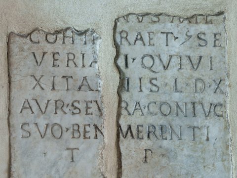 - ---] / [---]nus mil(es) / coh(ortis) II [p]raet(oriae) |(centuria) Se/veria[n]i qui vi/xit annis L d(iebus) X / Aur(elia) Sev[e]ra coniugi / suo ben[e] merenti / t(estamento) p(osuit)