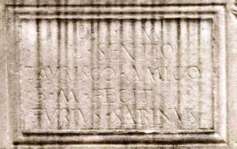 - D(is) M(anibus) / L(ucio) Sentio / Taurisco amico / b(ene) m(erenti) fecit / Furius Sabinus