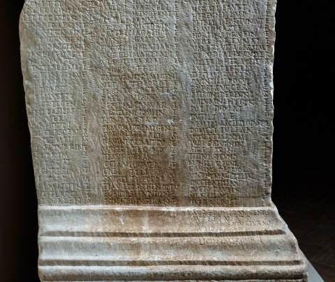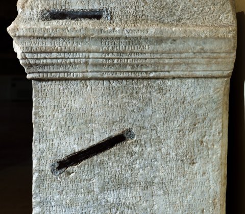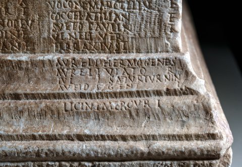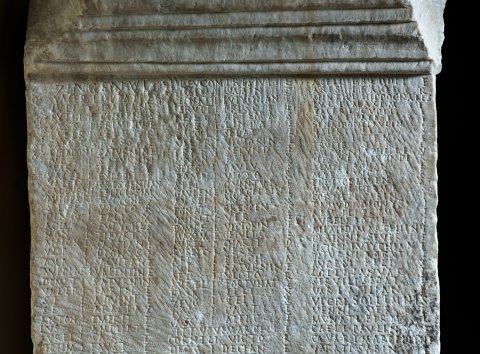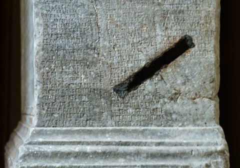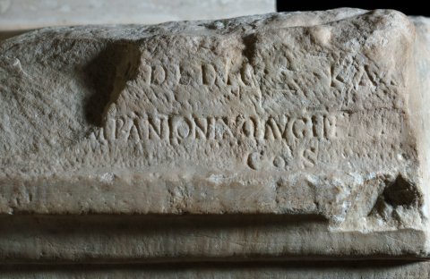 Auf dem Gesims der linken Seite: dedic(ata) Kal(endas) [---] /