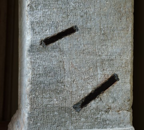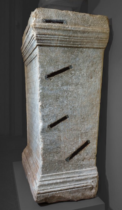 rechte Seite: Namensliste in drei Kolumnen auf Gesims und Schaft
