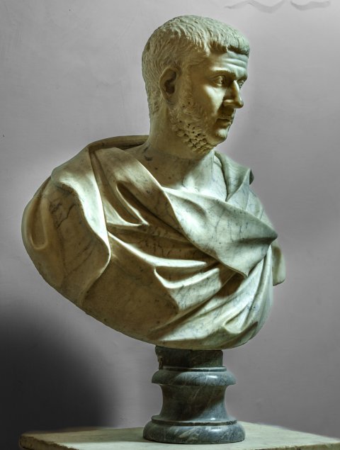 - Bruch durch Hals, Nase, Oberlippe u. Büste ergänzt