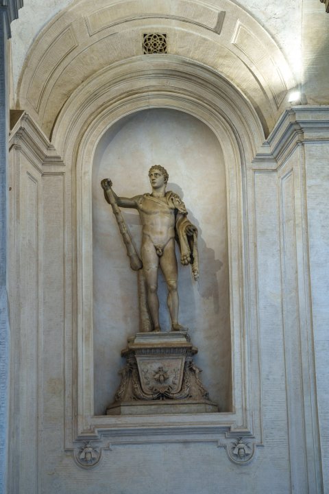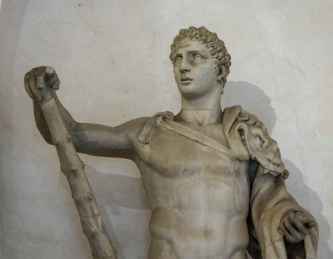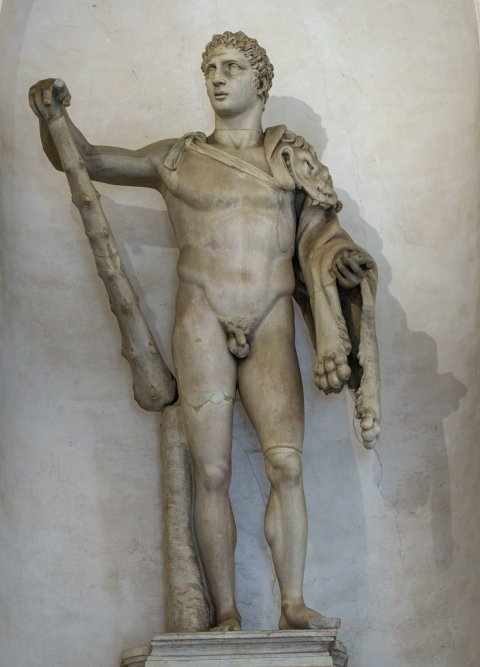 - aus Fragmenten zusammengesetzt, zahlreiche Ergänzungen (Löwenhaut, rechter Arm), Kopf antik ?
