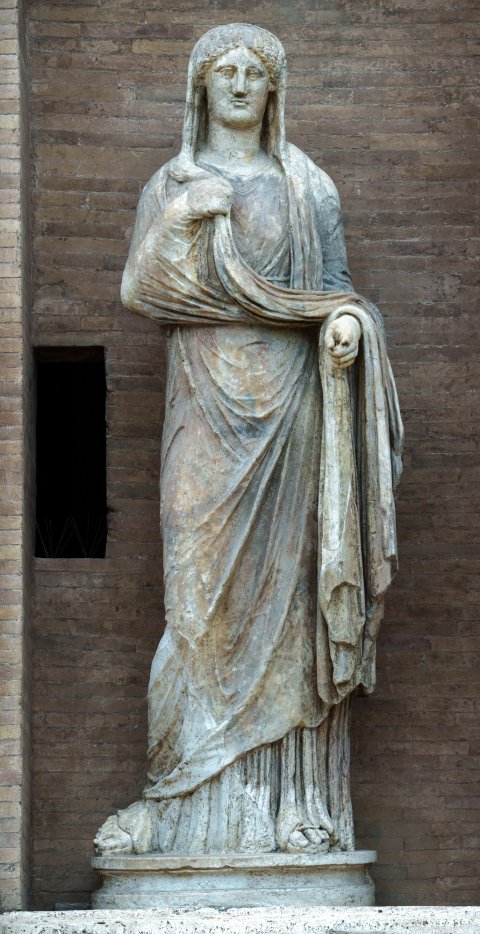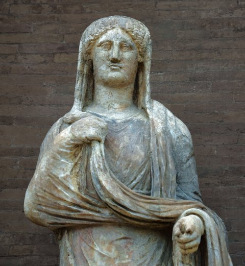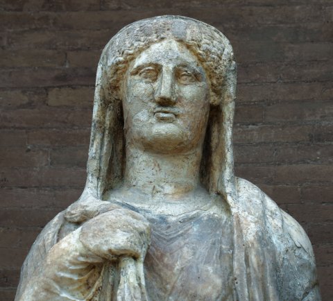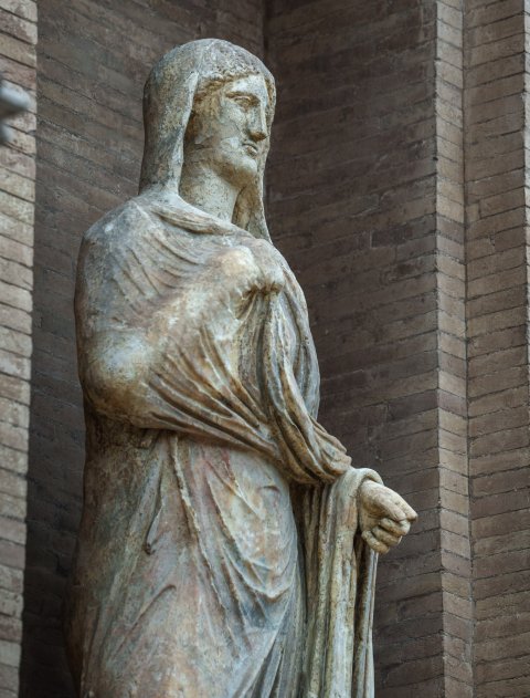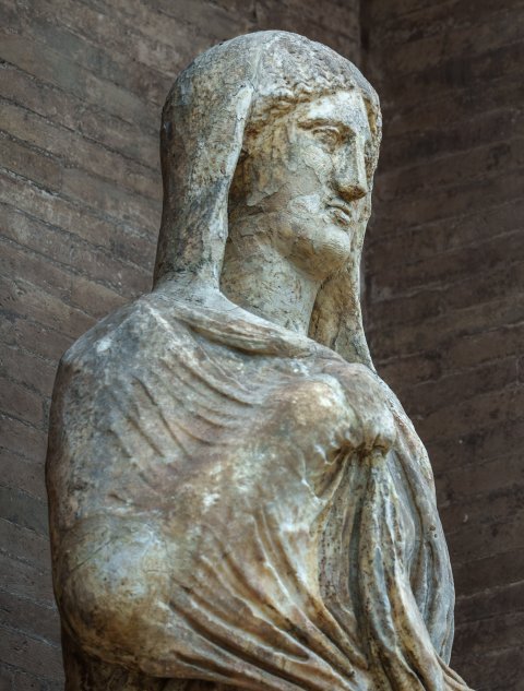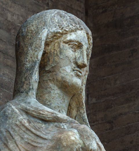 - Ergänzungen: Teile des Gesichts, Hals, linke Hand, Gewandstück zwischen den Füßen