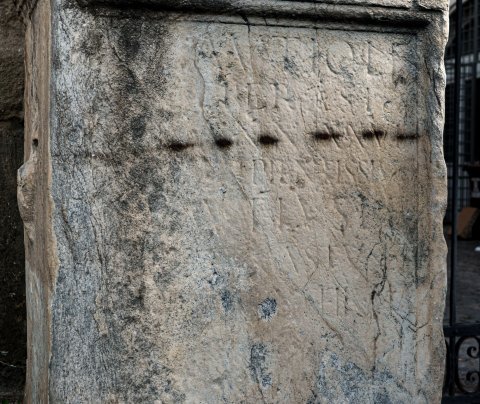- L(ucio) Plautio L(uci) f(ilio) / Gal(eria) Eperasto / vix(it) ann(os) XXVI / optimo et pientissimo / L(ucius) Plautius L(uci) f(ilius) / Gal(eria) Eperastus et / Sulpicia Cn(aei) f(ilia) Firma / parentes miseri / qui eum superaverunt