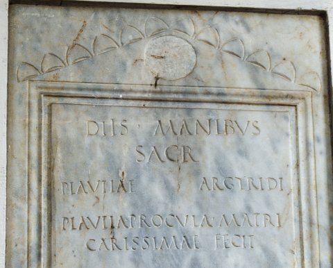- Di{i}s Manibus / sacr(um) / Plautiae Argyridi / Plautia Procula matri / carissimae fecit