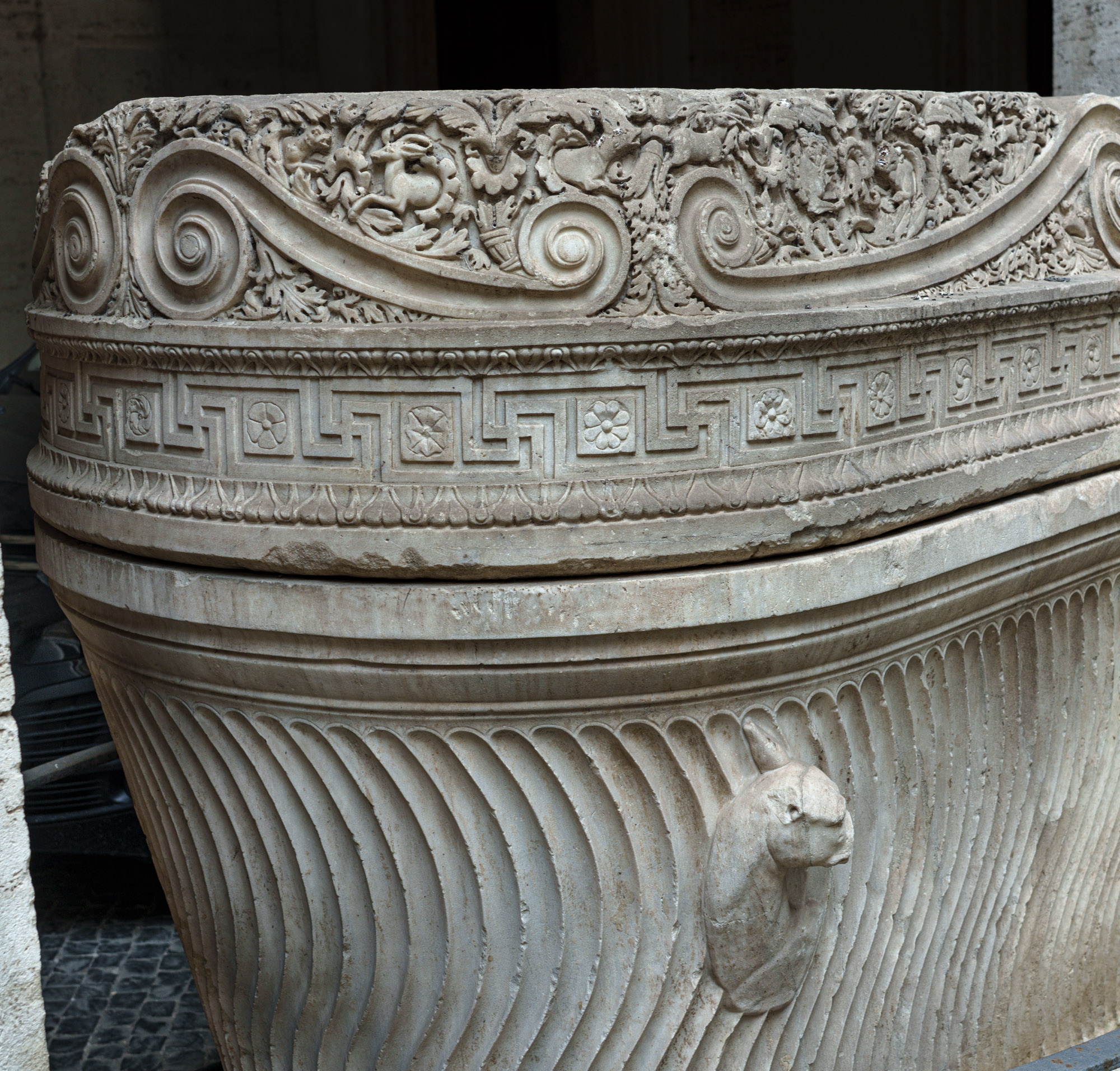 35505 Riefelsarkophag mit Tierprotomen