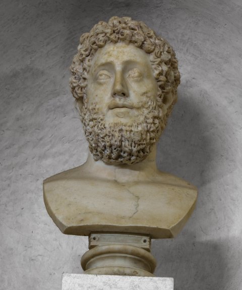 - unbekleidete Porträtbüste eines Mannes mit lockigem Haar und Bart