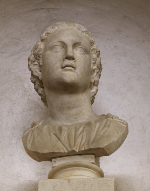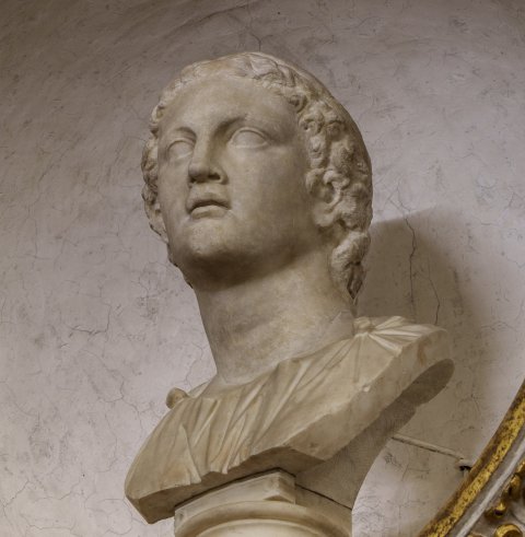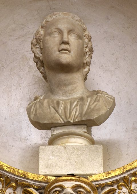 - im Hals unregelmäßig abgebr., Büste u. Nasenspitze ergänzt
