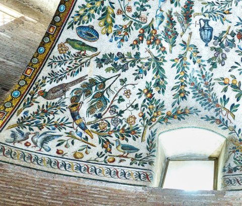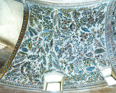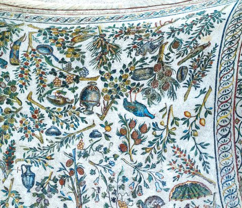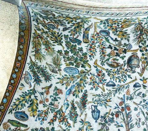 35539 Mosaik mit Pflanzen, Vögeln und Gefäßen in Sta. Costanza