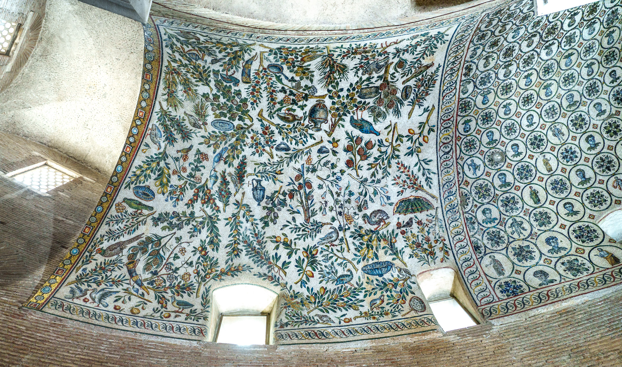 35539 Mosaik mit Pflanzen, Vögeln und Gefäßen in Sta. Costanza