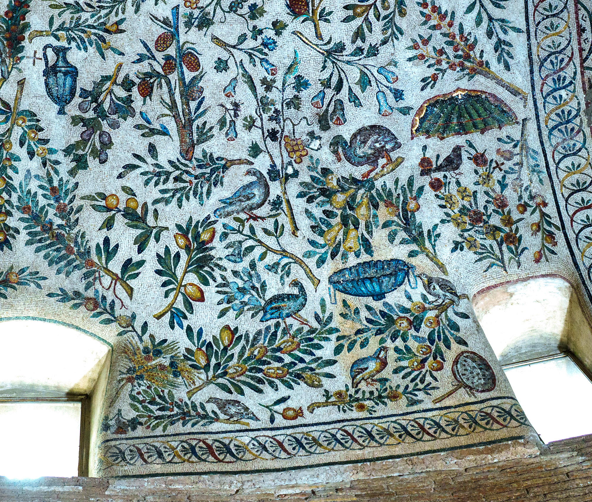 35539 Mosaik mit Pflanzen, Vögeln und Gefäßen in Sta. Costanza