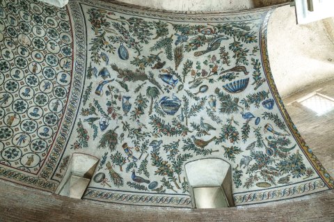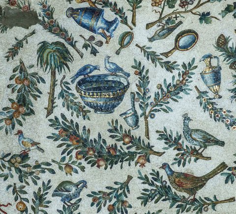 35540 Mosaik mit Pflanzen, Vögeln und Gefäßen in Sta. Costanza