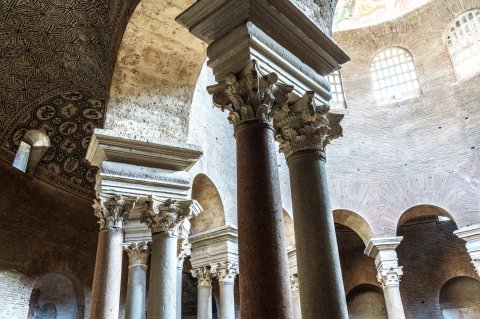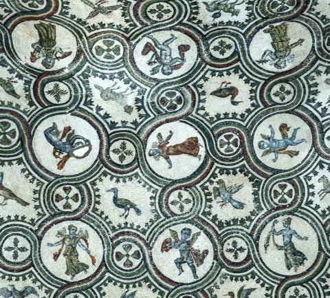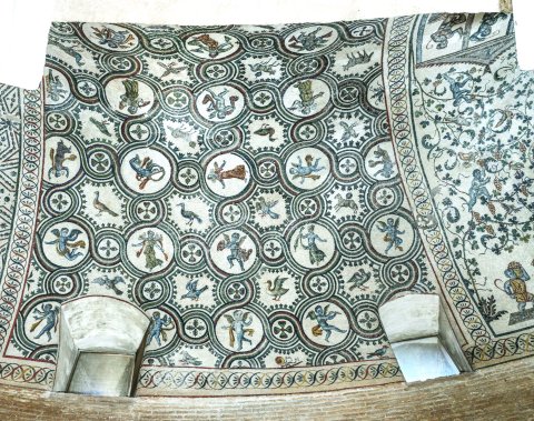 35541 Mosaik mit Medaillons in Flechtwerkrahmen in Sta. Costanza