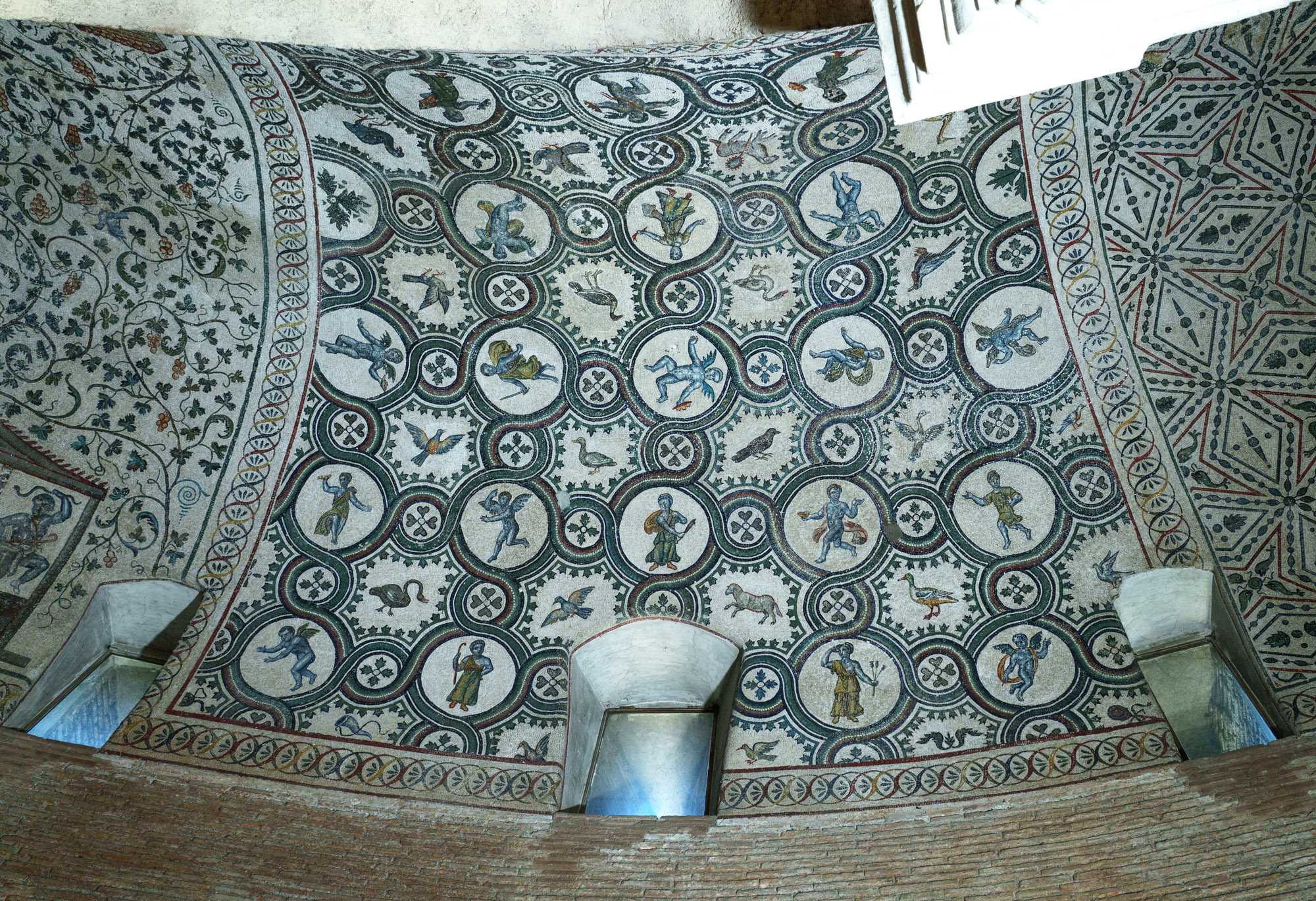 35542 Mosaik mit Medaillons in Flechtwerkrahmen in Sta. Costanza