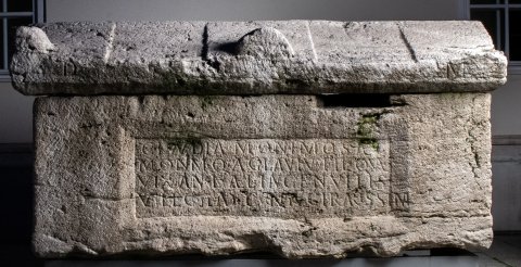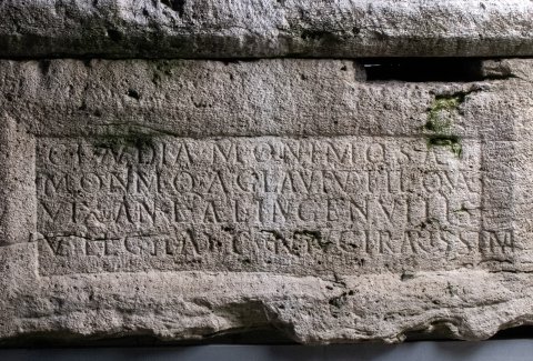 - D(is) M(anibus) // Claudiae Monimosae / Monimi q(uondam) Aglavi vet(erani) fil(iae) quae / vix(it) ann(os) L Aeli(us) Angenuilis / vet(eranus) leg(ionis) II ad(iutricis) coniugi rarissim(a)e