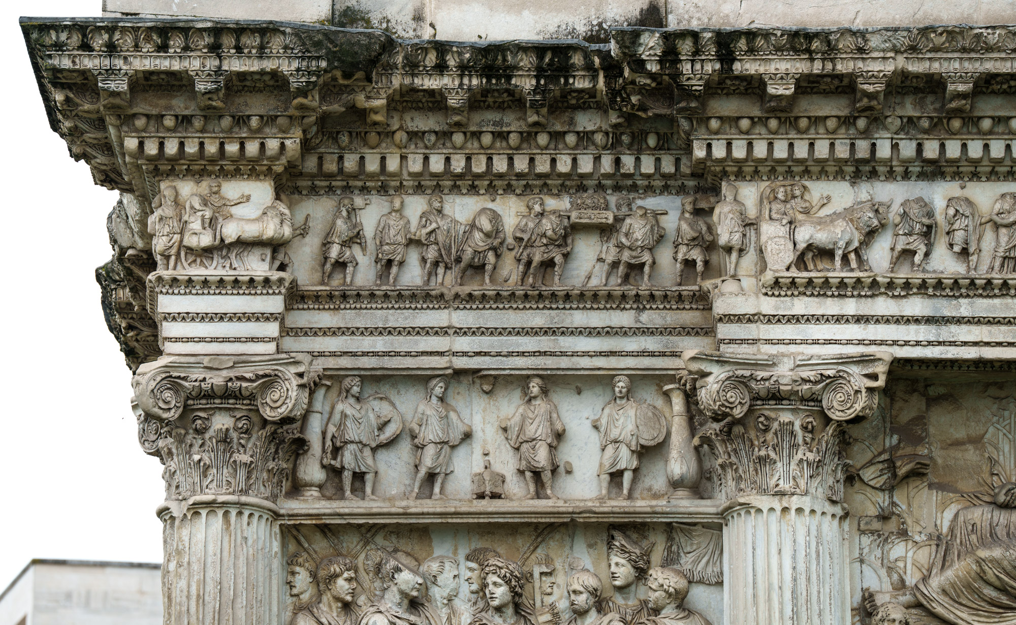 35608 Trajansbogen von Benevent: Vier Friese auf Höhe der Kapitelle