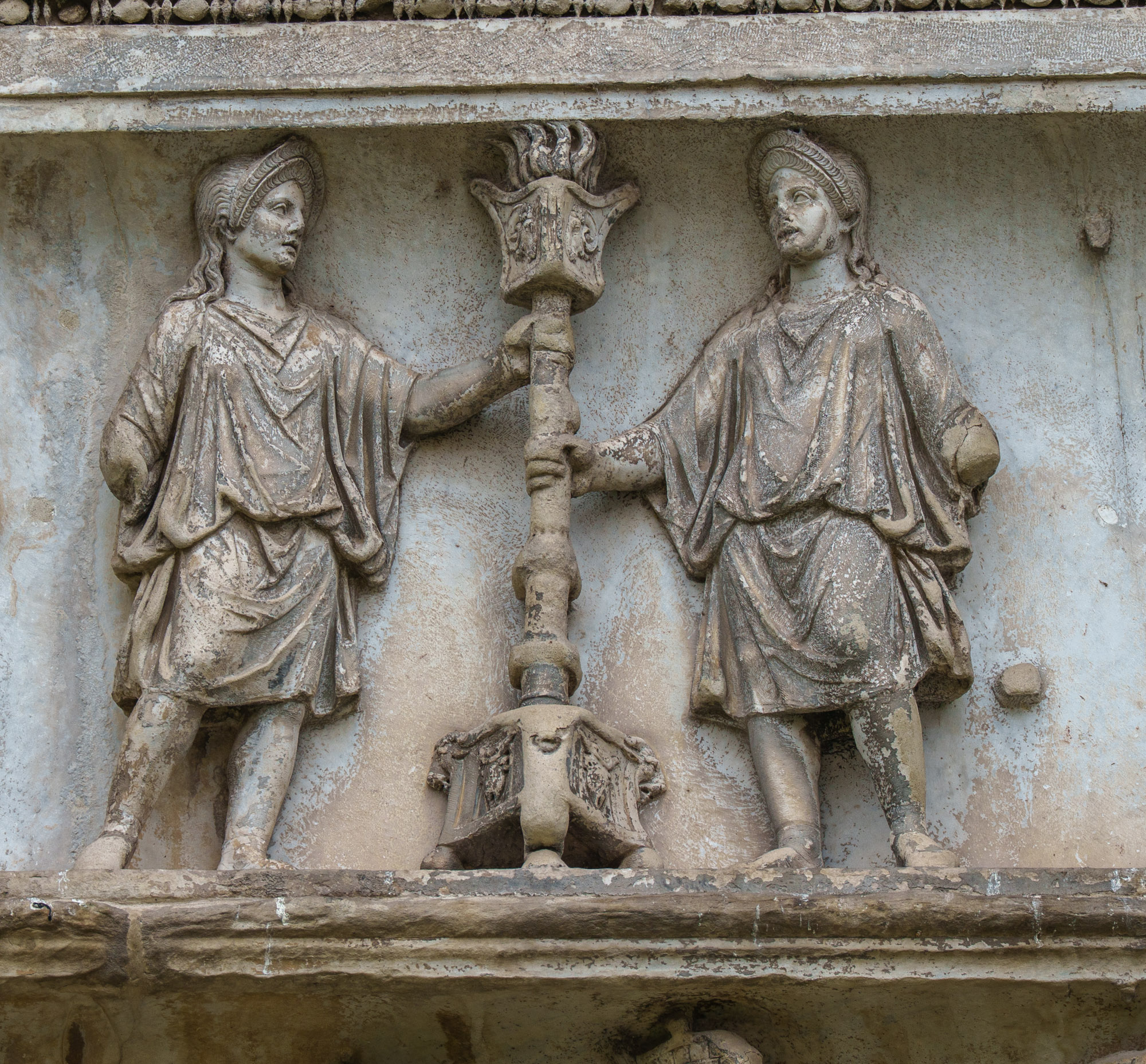 35608 Trajansbogen von Benevent: Vier Friese auf Höhe der Kapitelle